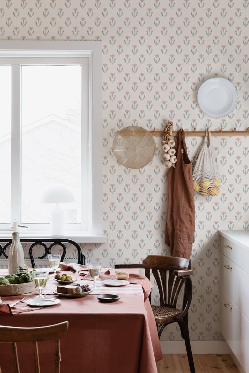 Sie waren die großen Influencer ihrer Zeit. Diese Blume wird von so vielen übersehen, wurde aber von Carl als Symbol für den Kampfgeist und die Sturheit der Familie hochgehalten. Wenn Sie ihr Zuhause, Lilla Hyttnäs in Dalarna, besuchen, vergessen Sie nicht, einen Blick ganz oben auf die Wand in Carls Atelier zu werfen, wo Sie stilisierte, handgemalte Löwenzahnblumen finden. Unsere Löwenzahn-Tapetenvariante gibt es auch in Rosa.