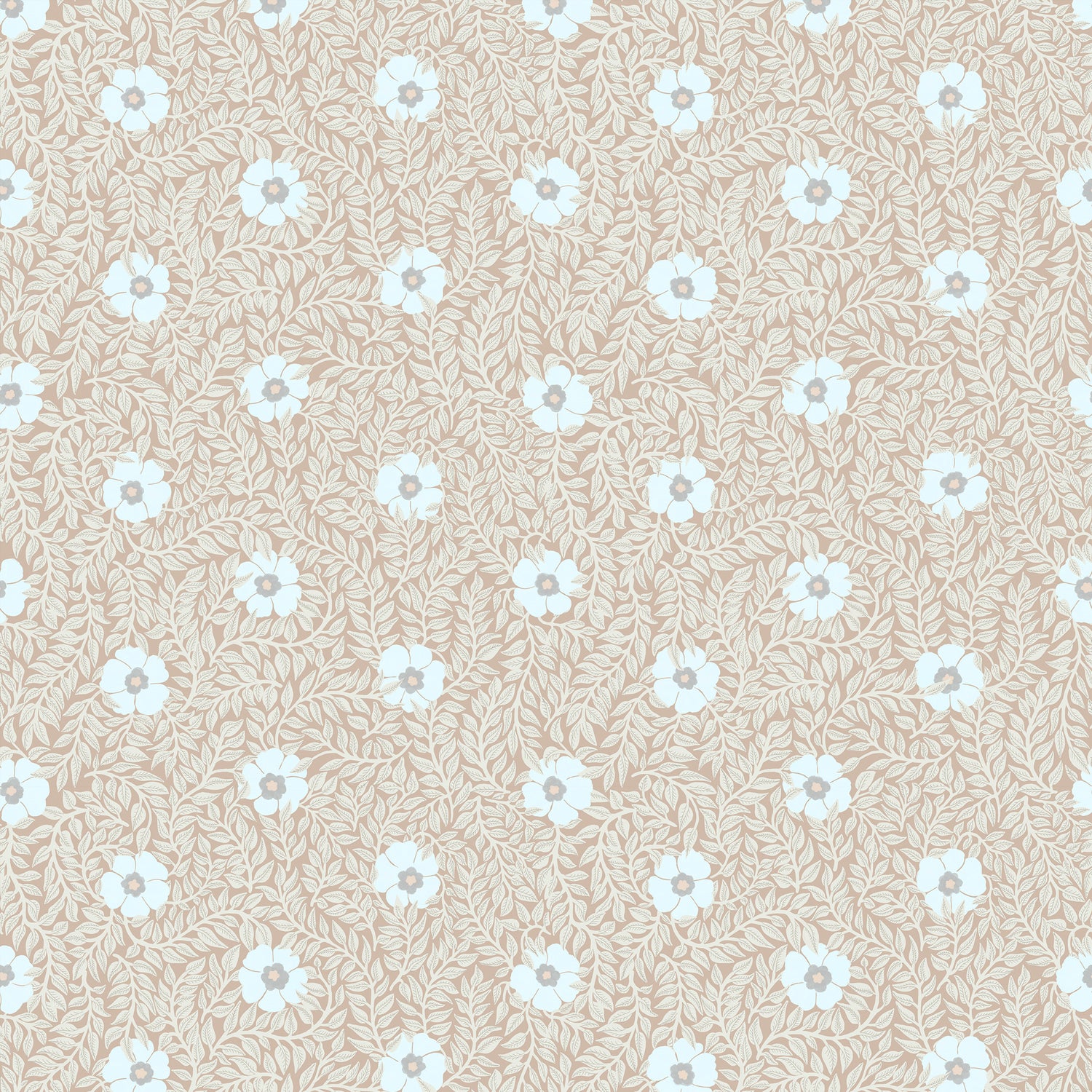 Das Kicki-Muster ist ein zarter Tanz aus detaillierten kleinen Blättern, die sich zwischen Blütenblättern verflechten, wodurch ein Vintage- und dennoch zeitloses Muster entsteht, das jedem Raum Charme und Stil verleiht.