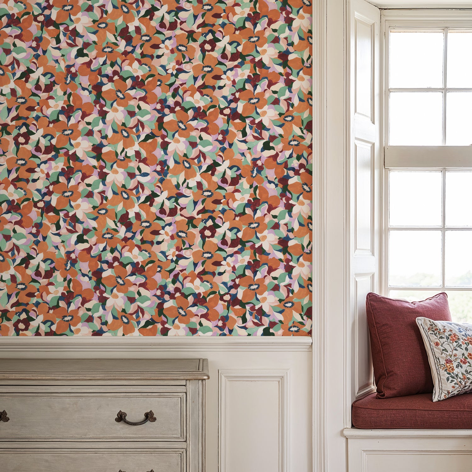 With a lively all over repeat and a balanced mix of bold florals and gentle negative space, Primrose feels both playful and elevated.