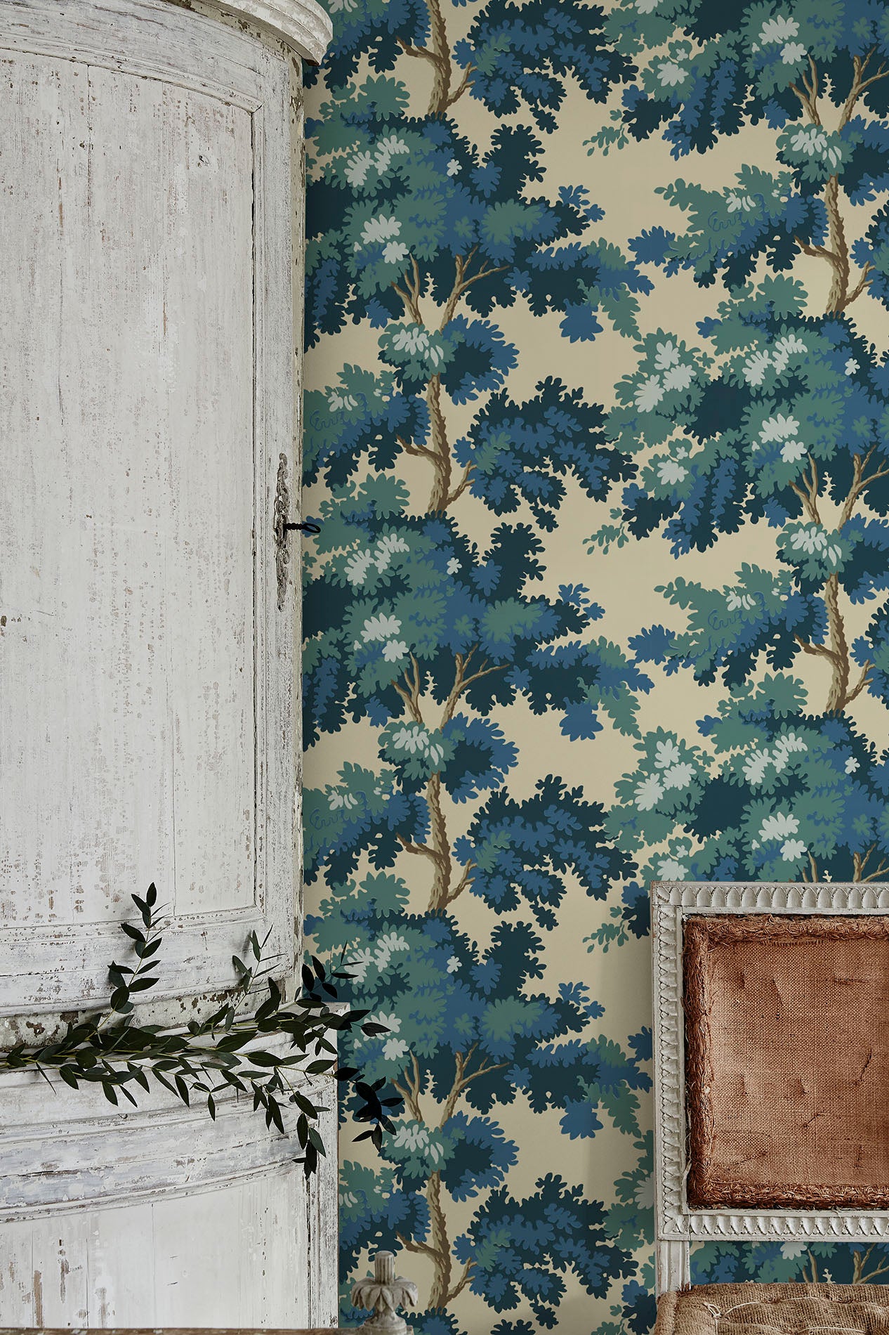 Het patroon is ook geïnspireerd op antieke wandtapijten, waar stijlvolle bladeren worden weergegeven in velden van licht en schaduw