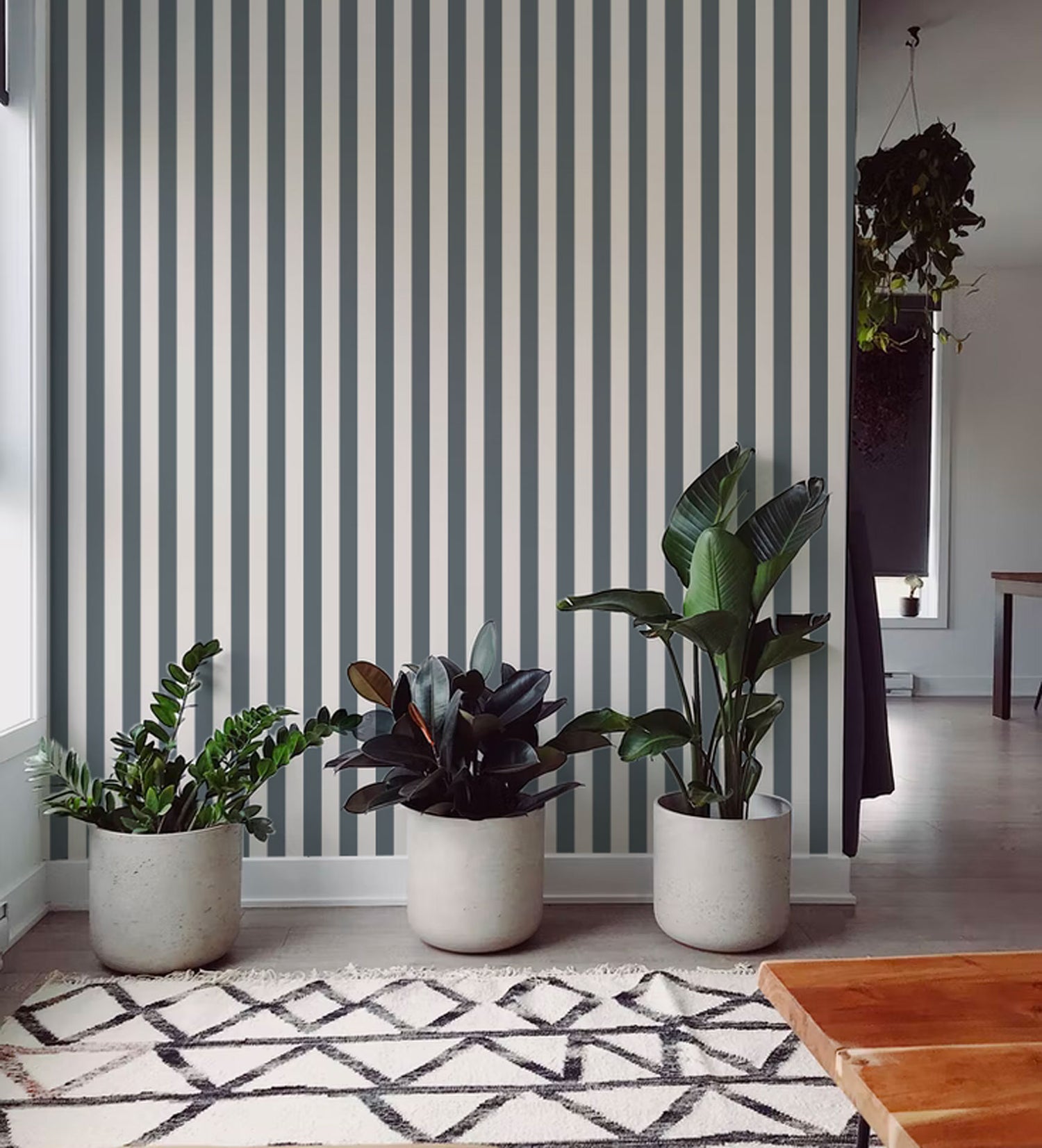 Ons Ventor gestreepte behang is eenvoudig gekleurd in blauw en wit en brengt een klassiek maar tijdloos patroon terug. De collectie zomergrijs gestreept behang roept herinneringen op aan zonnige stranddagen en ijssalons en is voor altijd on-trend.