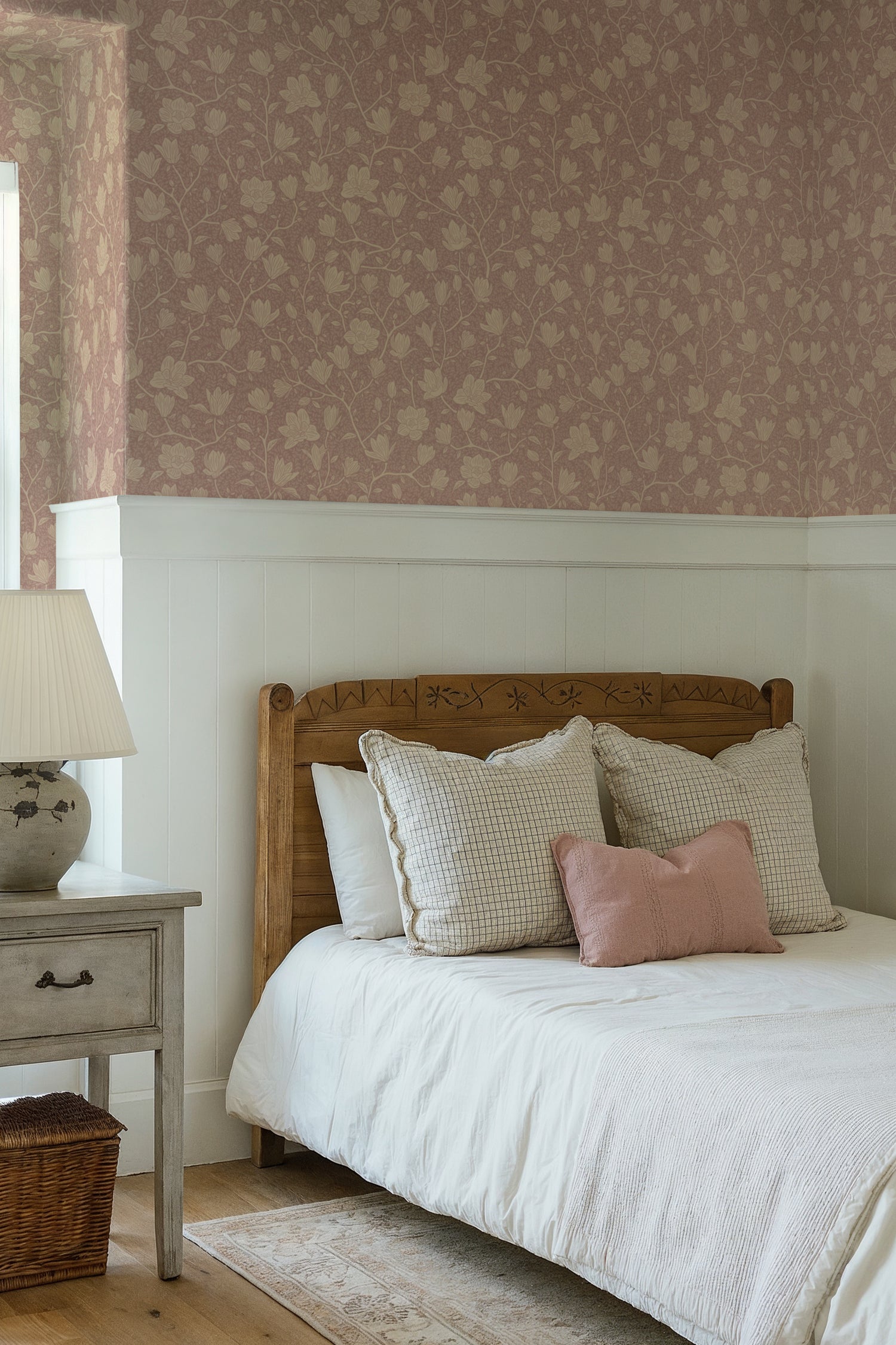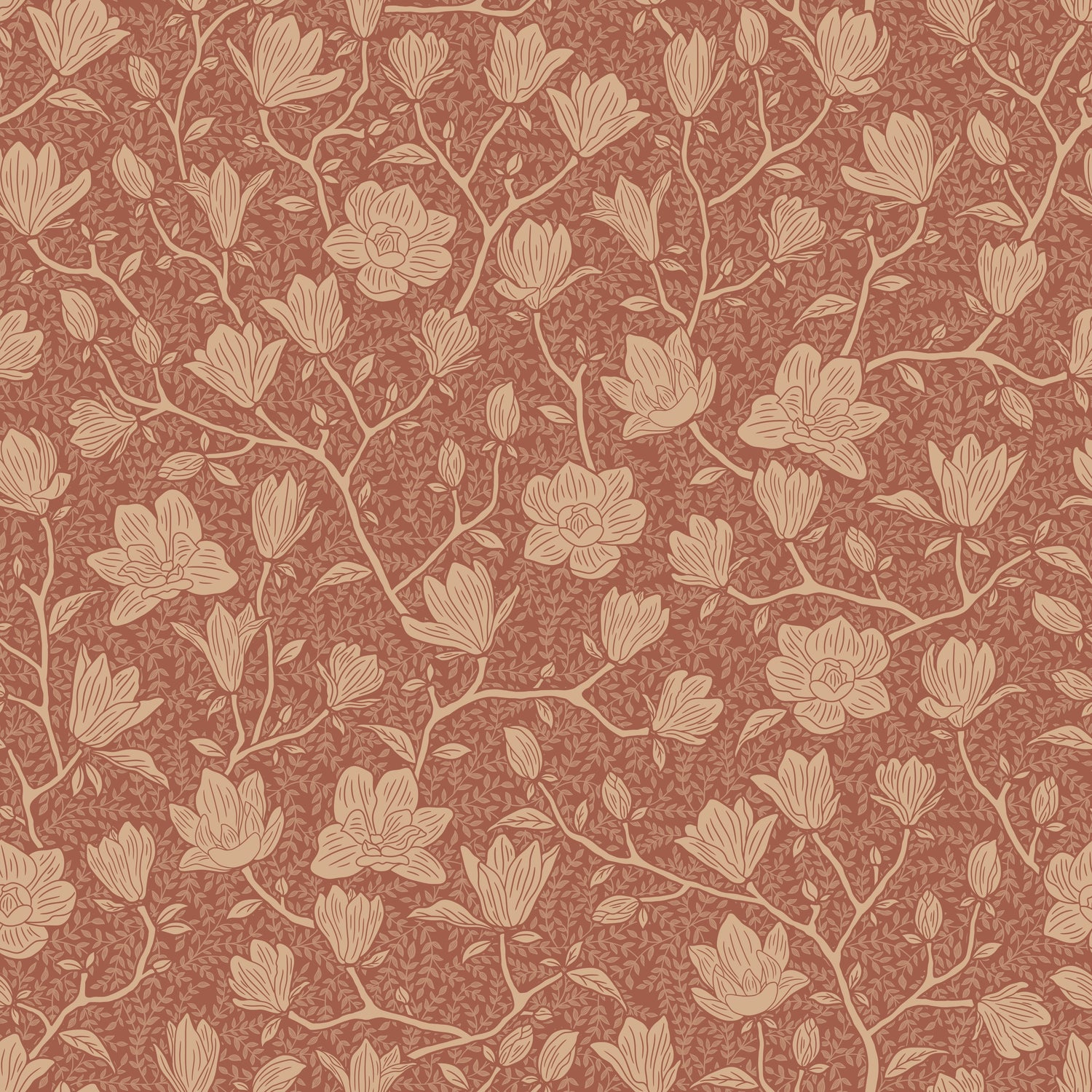 Noah is a gentle celebration of nature in full bloom. Hand-drawn magnolia branches sweep across a soft terracotta backdrop, creating a pattern that feels both calm and quietly confident. The detailed line work brings a classic botanical charm, while the spacious composition keeps it fresh and modern.